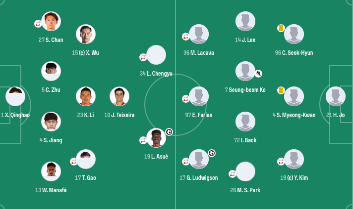 后卫:4-徐名宽、17-古斯塔夫·卢德维格松(81'2-赵玹泽)、19-金英权(81'15-郑升炫)